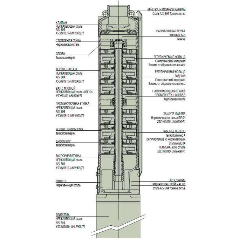 Погружной асинхронный двухполюсный двигатель из нержавеющей стали AISI 304 |